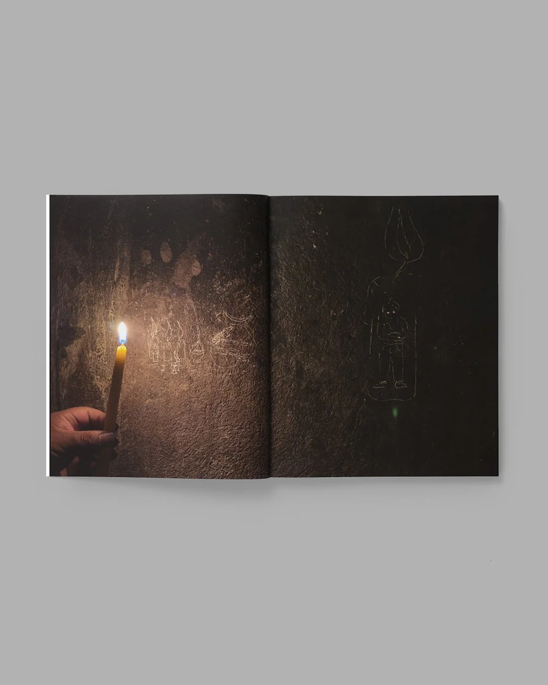 Calel preserves these visions by etching them into the smoke-darkened walls of the home, surfaces marked by years of hearth residue, turning fleeting experiences into a living archive. These drawings are translated onto the pages of Pina, woven together with Kaqchikel poetry, family Polaroids, and handwritten notes that trace the delicate textures shaping both the artist’s dreams and those of his family. As a record of the most fragile images, the exhibition invites viewers to “see” through touch, sensing the transience and force of dreams, poetry, and intimacy. The fragility of being human is at the center of this thoughtful exhibition.
