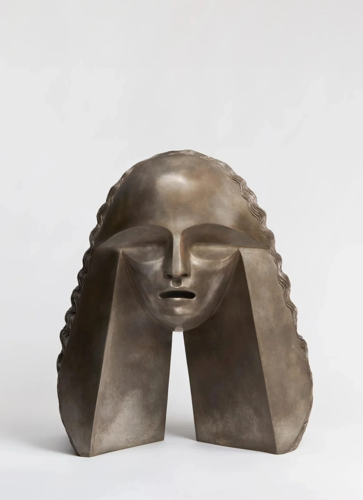 Sarah Peters, Augur,2022. Bronze with silver nitrate patina, 18 1/2 x 16 x 13 in. Edition of 3 plus 2 AP (#2/3).Copyright of the artist, image courtesy of the gallery.